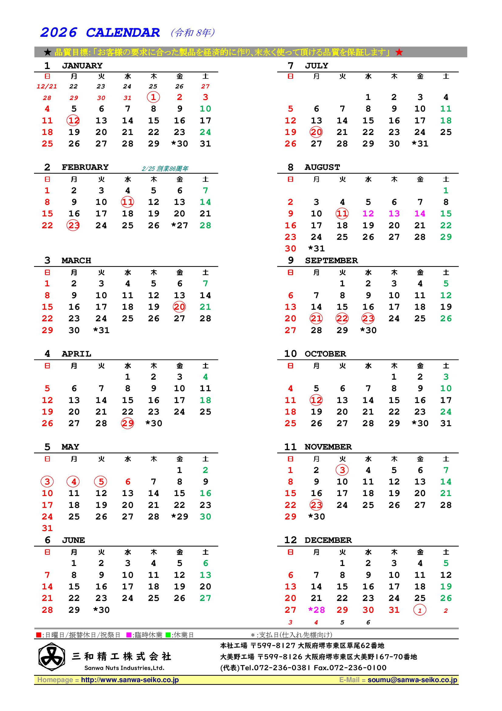 営業カレンダー